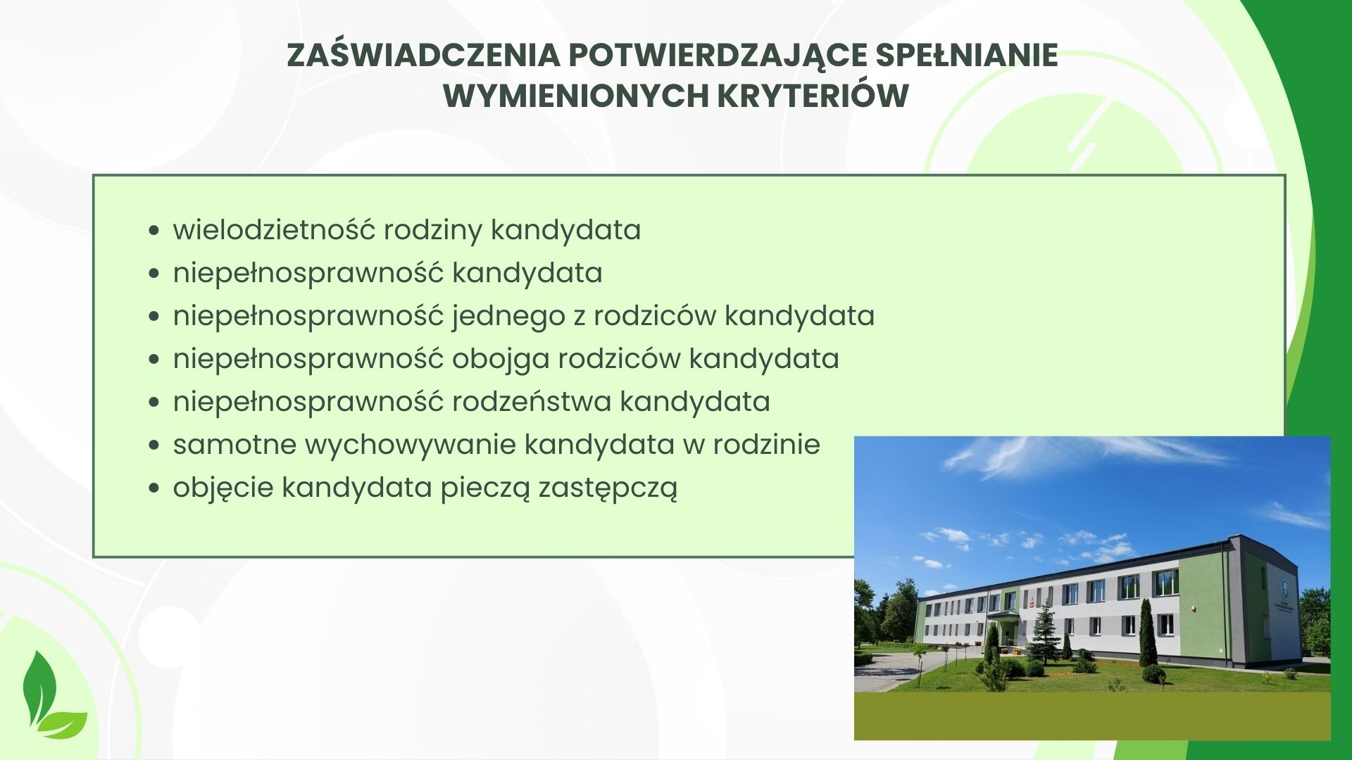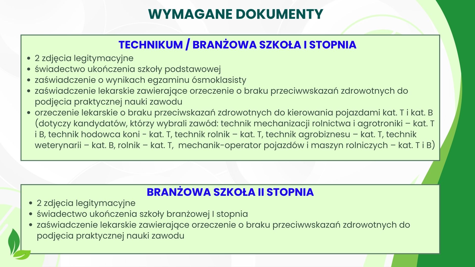 (dokumenty do pobrania ze strony www lub dostępne w sekretariacie szkoły)