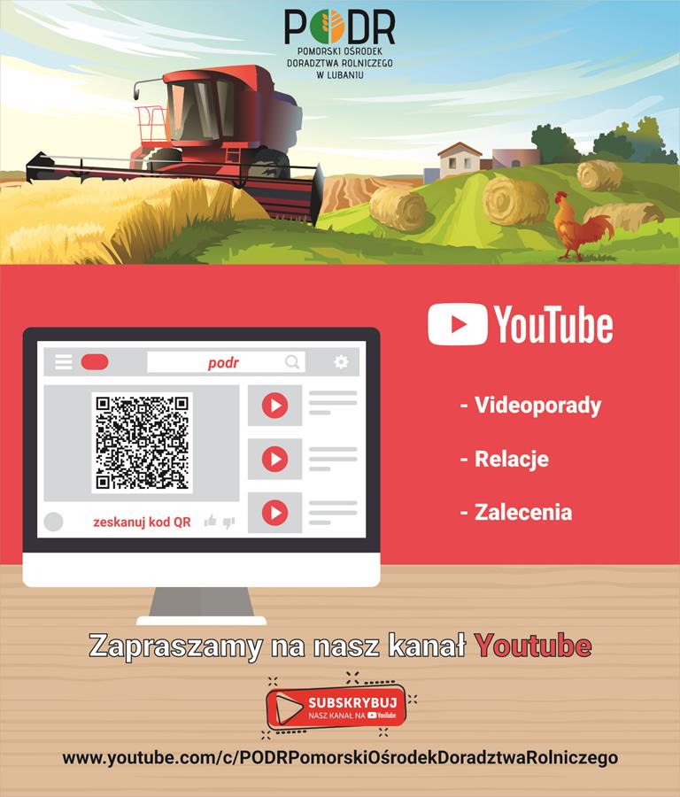 Pomorski Ośrodek Doradztwa Rolniczego zaprasza na swój kanał na YouTube. Można tam znaleźć videoporady, relacje, zalecenia itp.