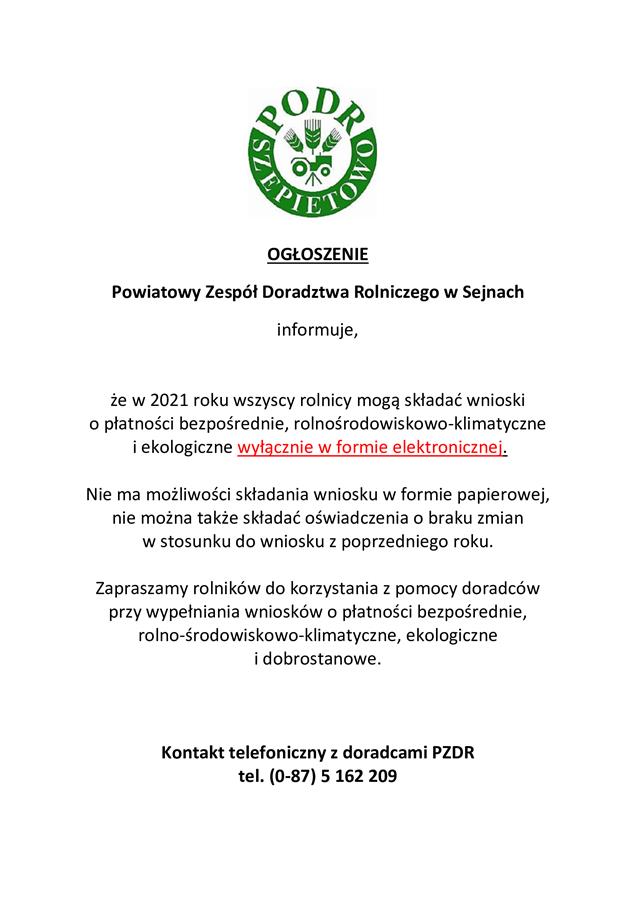 Wnioski tylko przez internet - ogłoszenie Powiatowego Zespołu Doradztwa Rolniczego w Sejnach