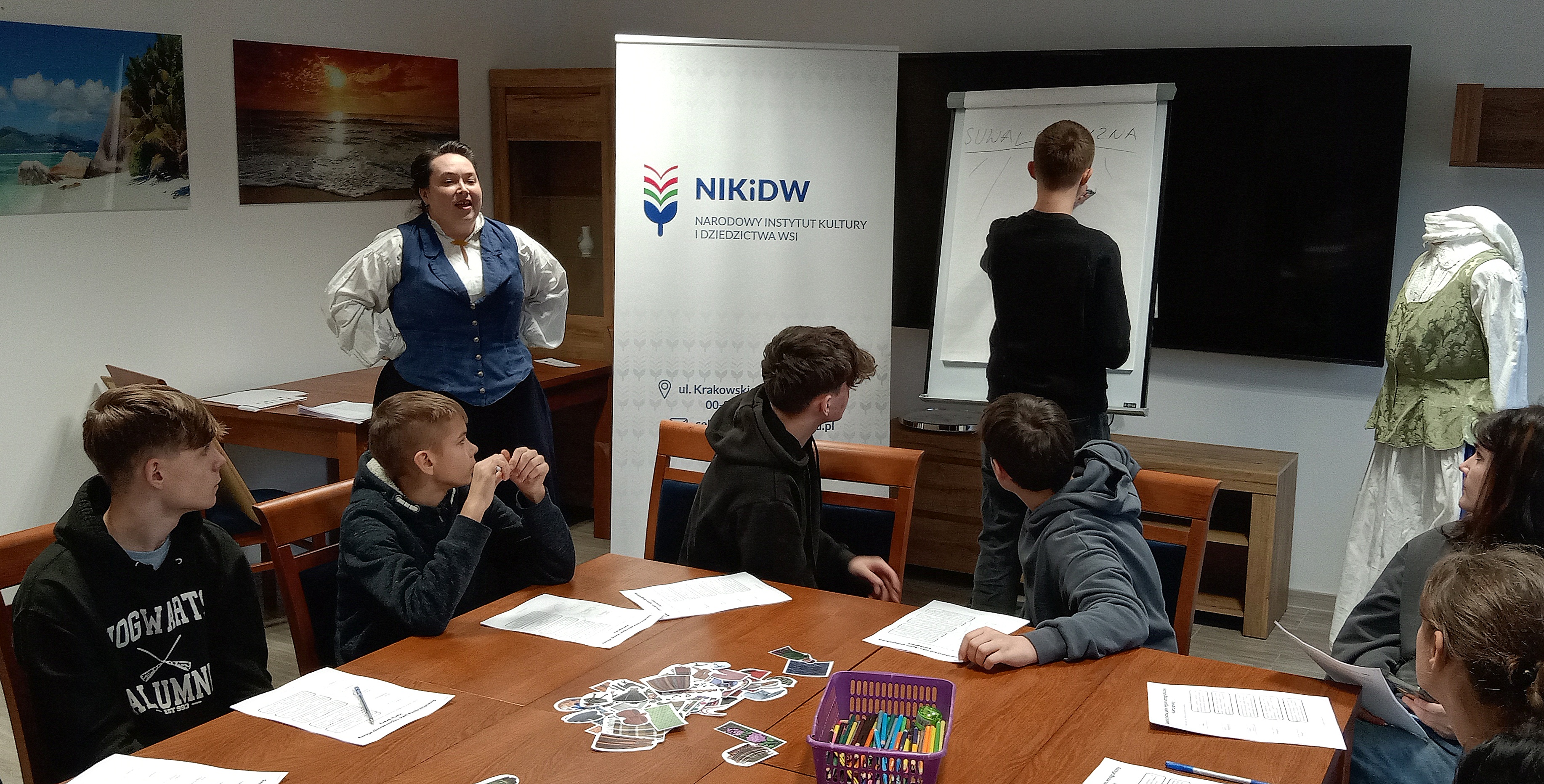 Warsztaty etnograficzne poprowadziła pani Magdalena Zielińska-John, instruktorka pracowni dziedzictwa kulturowego w Suwalskim Ośrodku Kultury. Uczniowie zgłębiali znaczenie pojęć takich jak folklor, etnografia, grupa etniczna czy grupa etnograficzna. Szczególną uwagę poświęcono kulturze ludowej Suwalszczyzny, a młodzież uczyła się rozpoznawać jej charakterystyczne cechy.
