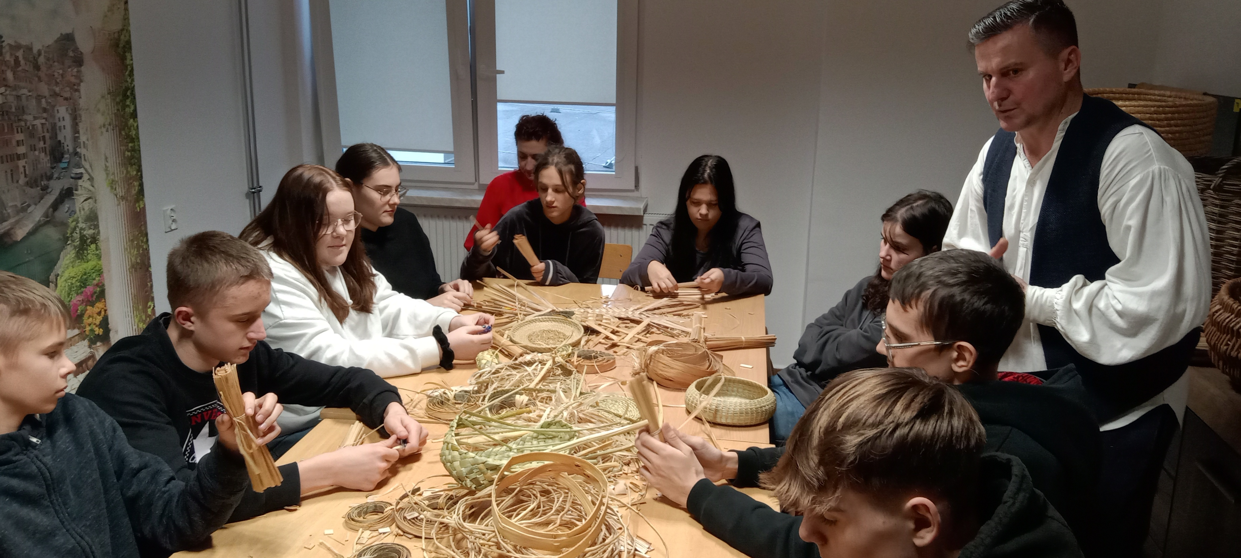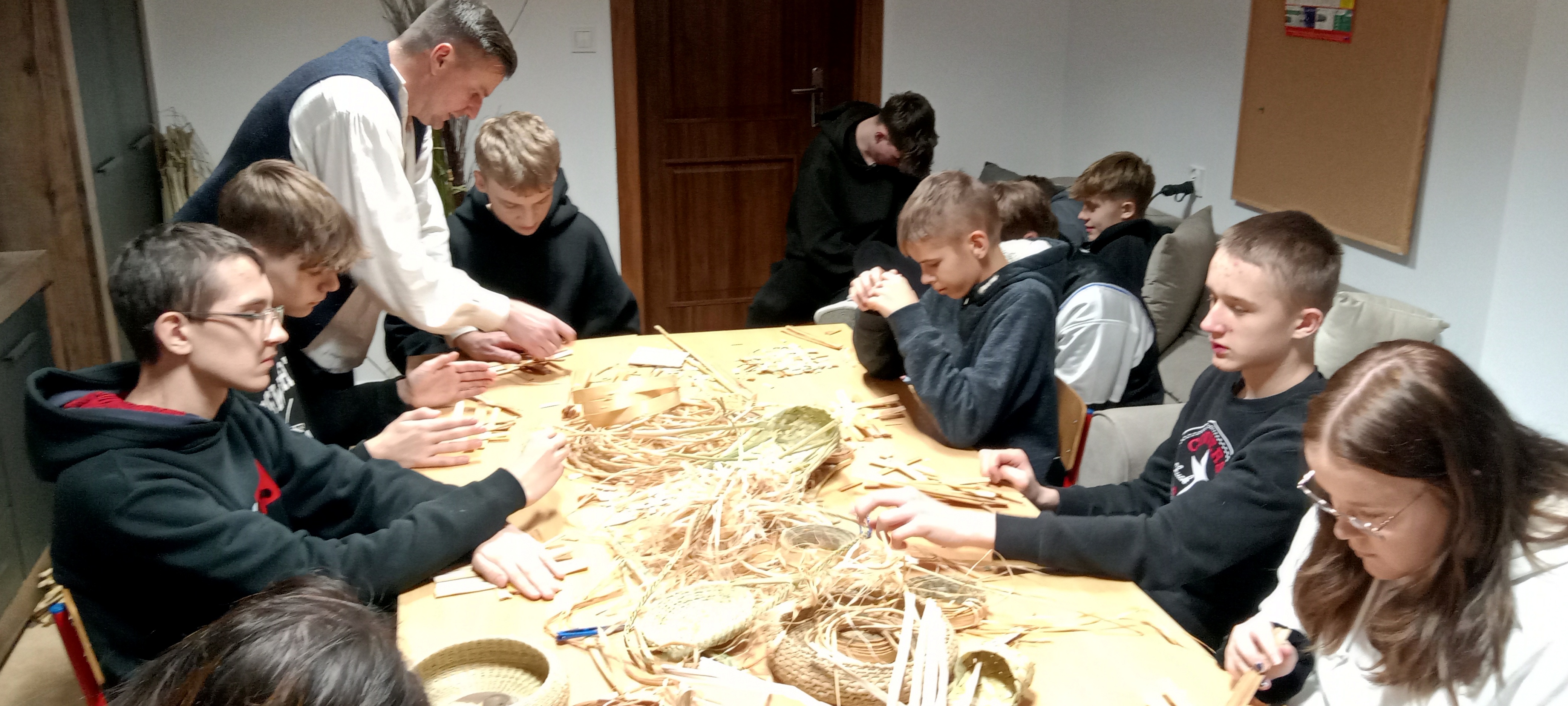 Wprowadził on uczniów w tajniki wyplatania koszyków i ozdób z naturalnych materiałów, takich jak liście i łodygi pałki wodnej, oczeret jeziorny (sitowie), łyko lipowe czy wiklina. Pod jego czujnym okiem wielu uczestnikom udało się własnoręcznie wykonać swoje pierwsze podkładki pod kubek, które stały się wyjątkową pamiątką z warsztatów.