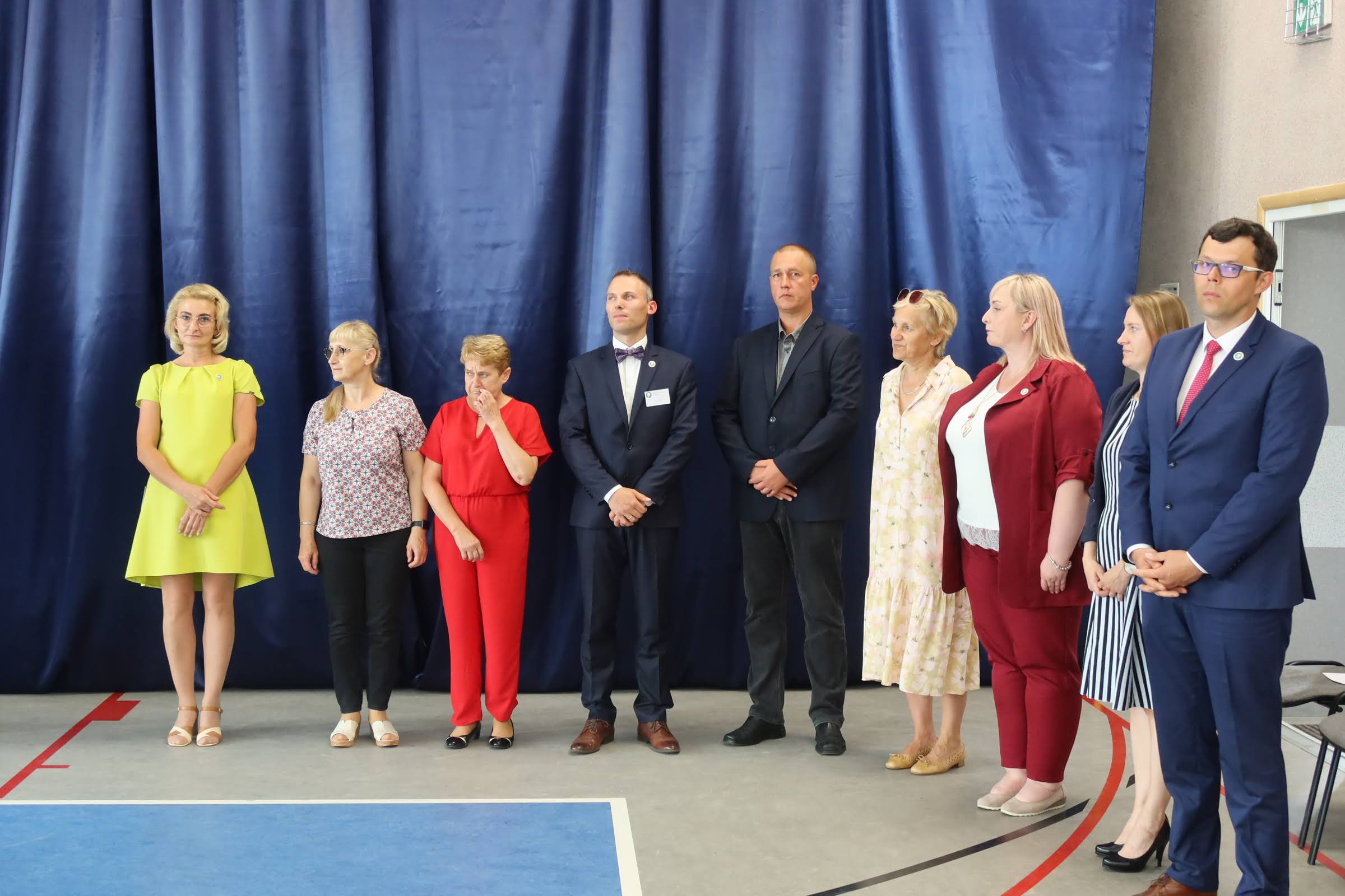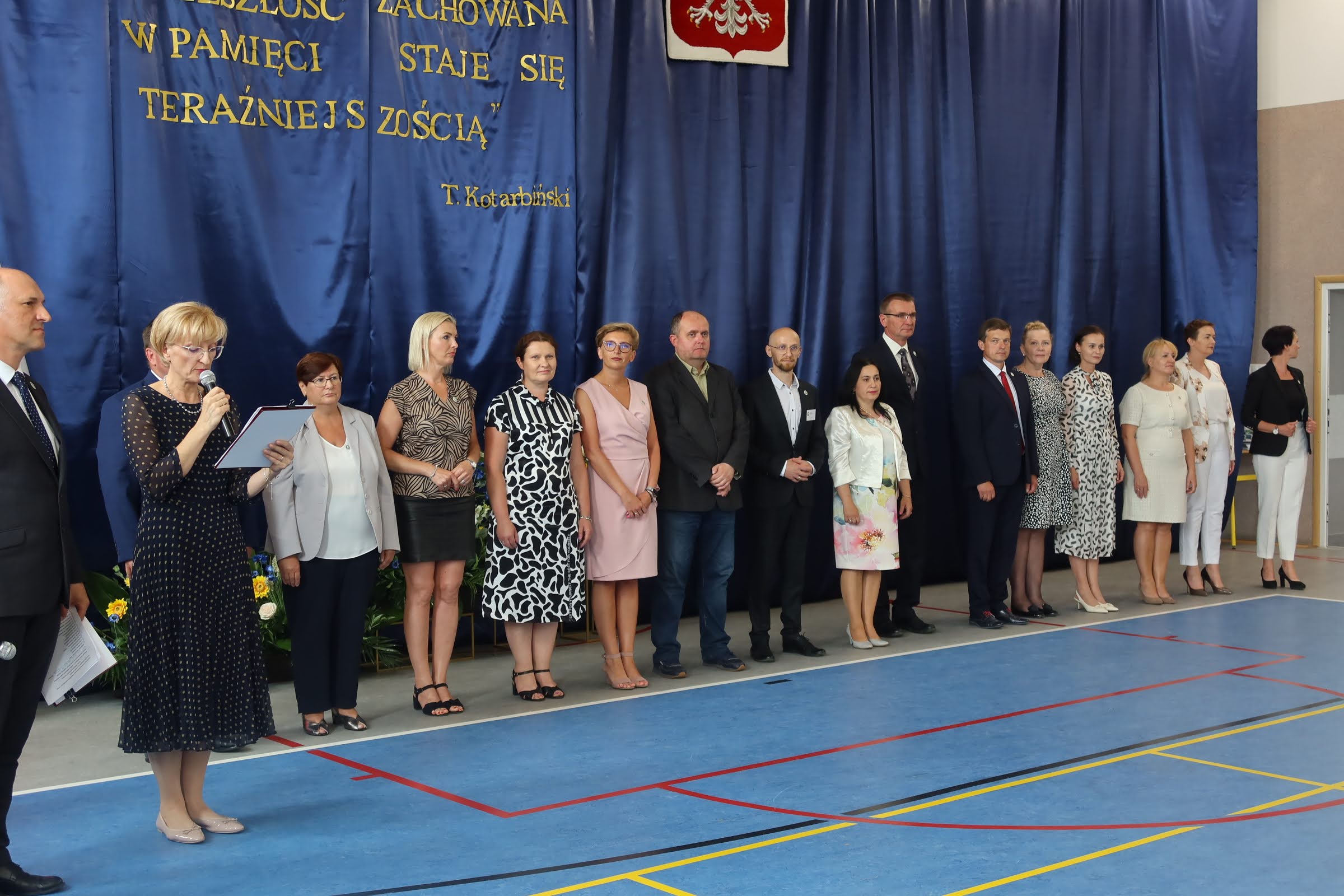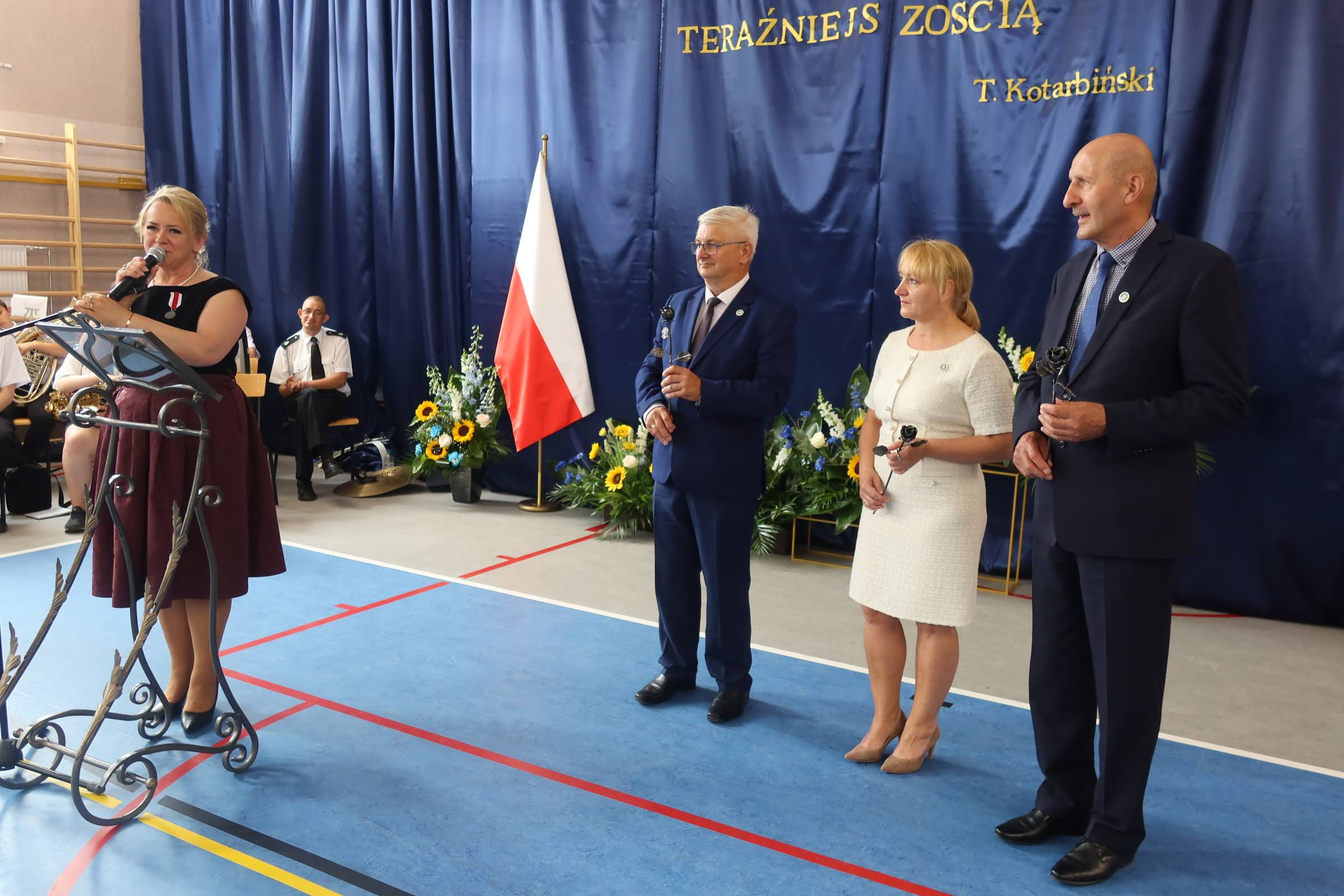 Po wprowadzeniu sztandarów i odśpiewaniu hymnu narodowego dyrektor Dorota Tomczyk powitała zgromadzonych gości. Obecnością swoją zaszczycili m.in.: