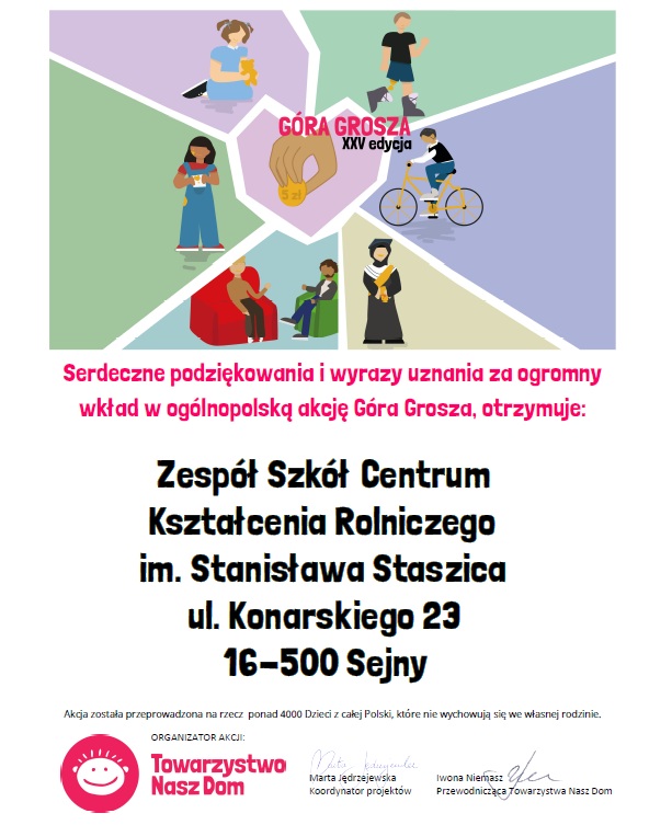 W okresie marzec – kwiecień Samorząd Uczniowski przeprowadził w naszej szkole zbiórkę w ramach XXV edycji ogólnopolskiej akcji Góra Grosza. Dzięki zaangażowaniu uczniów, nauczycieli oraz całej społeczności szkolnej udało się zebrać kwotę 476,85 zł, która została przekazana na rzecz organizatora akcji – Towarzystwa Nasz Dom.