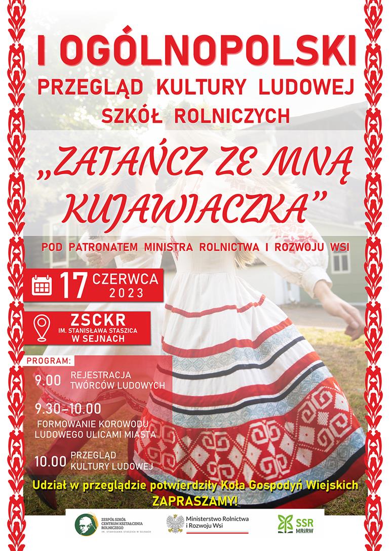 Przegląd Kultury Ludowej lista wpisów ZSCKR w Sejnach zaprasza na I Ogólnopolski Przegląd Kultury Ludowej Szkół Rolniczych "Zatańcz ze mną kujawiaczka" (szczegóły na plakacie)