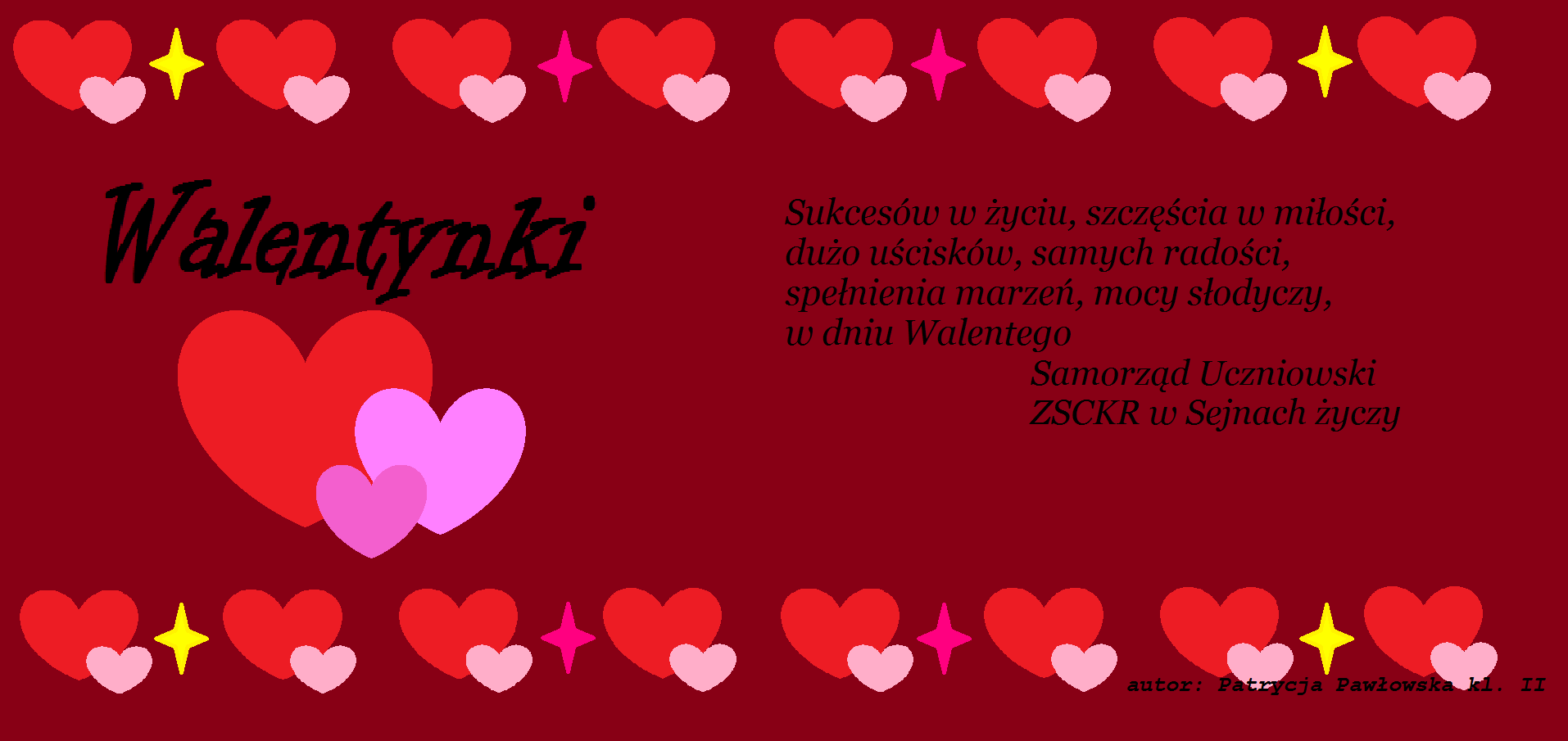 Samorząd przesyła życzenia miłego, słodkiego, pełnego uścisków Dnia Świętego Walentego.