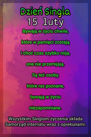 Pragniemy również zwrócić uwagę na kolejny po walentynkach dzień lutego. W dniu 15 lutego swoje święto obchodzą single. Data oczywiście nie jest przypadkowa, bowiem możemy usłyszeć, iż Dzień Singla to święto osób, które nie obchodzą walentynek. W tym dniu single okazują radość ze swojej niezależności i wolności. Warto podkreślić, iż życie w pojedynkę nie musi wiązać się wyłącznie z samotnością, a bycie singlem jest bardzo często świadomym wyborem. Wszystkim singlom życzymy więc spełnienia marzeń – niezależnie od tego, czy dotyczą one znalezienia swojej drugiej połówki, dalszego życia w poczuciu niezależności, czy zupełnie czegoś innego.
