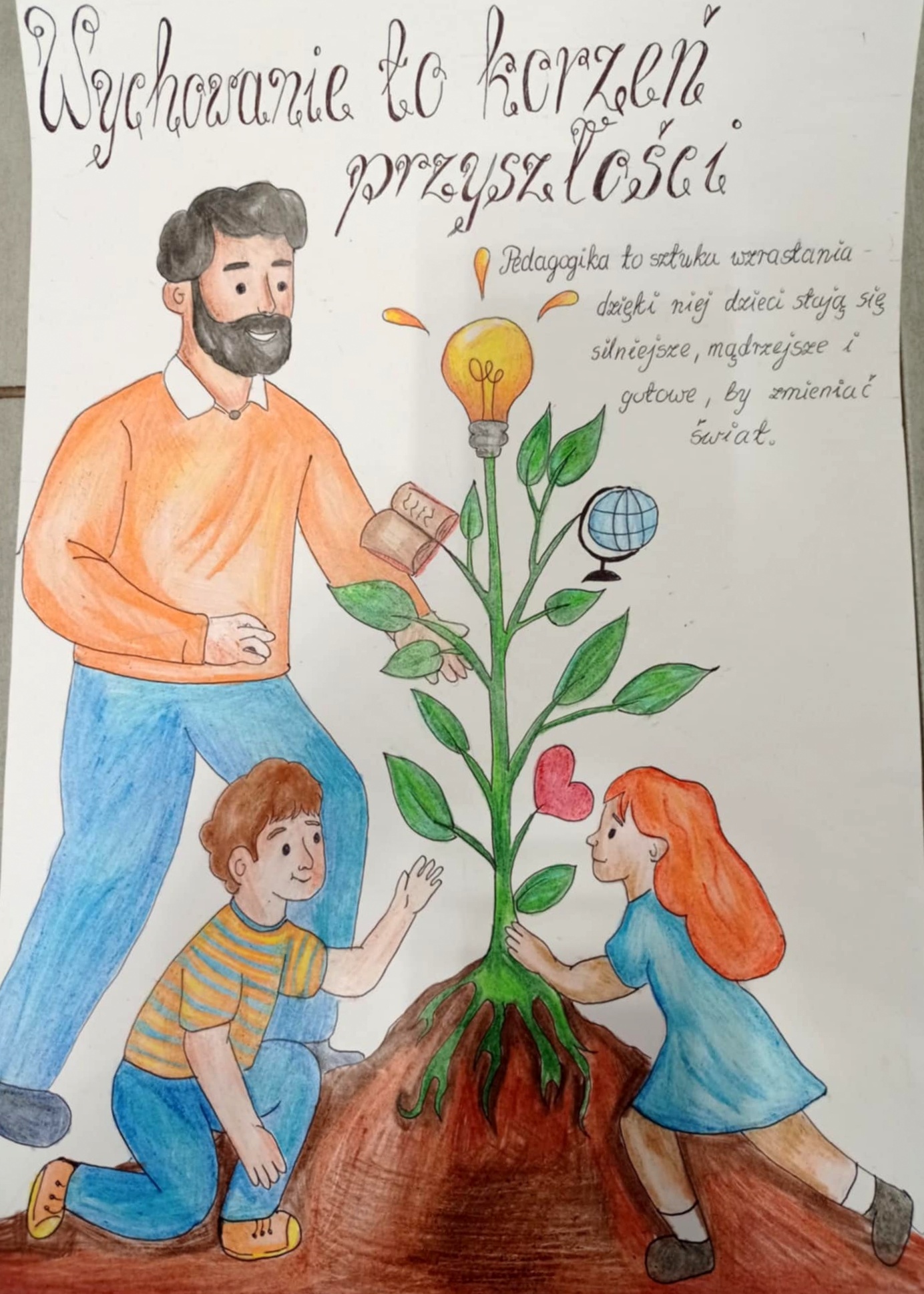 Naszą szkołę w konkursie reprezentowała uczennica klasy II PT – Roksana Michalska. Roksana zdobyła II miejsce za wykonanie plakatu pt. „Wychowanie to korzeń przyszłości”. Za swój sukces otrzymała nagrodę pieniężną w wysokości 500 zł oraz drobne upominki.